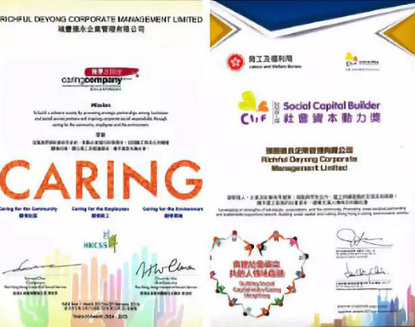 ? 榮獲香港社會服務聯會頒發的香港商界展關懷榮譽獎