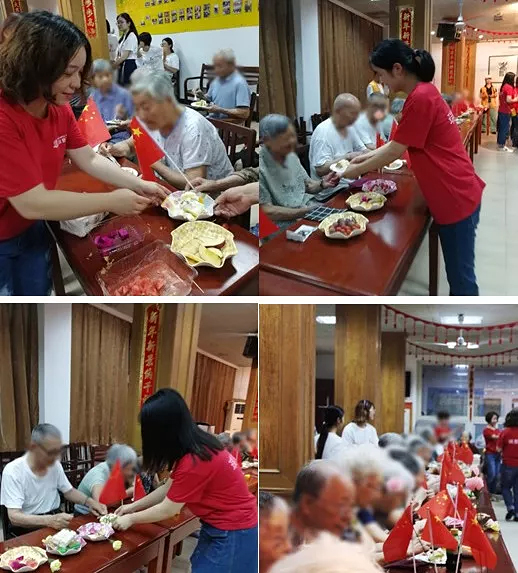 集團杭州公司的員工志愿者們提前為老人們準備了多種新鮮瓜果、養生干果和食品,根據每位老人不同的身體狀況和口味喜好,暖心地送到他們手邊。
