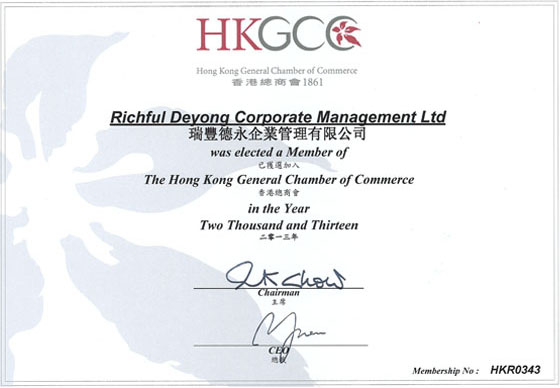 香港總商會(huì)頒發(fā)會(huì)員證書