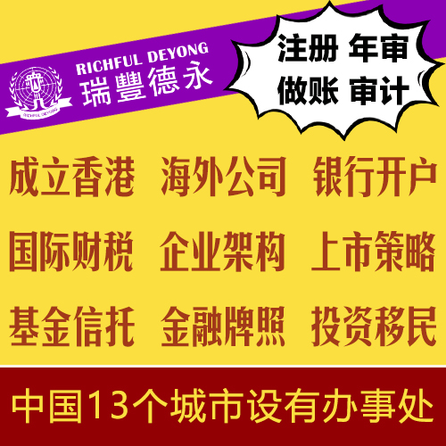 服務涵蓋:上市公司秘書、新股上市及股票登記、債務托管及授信,財富管理,海外信托和基金會設立,香港及離岸公司注冊,特許牌照申請,企業架構,財稅咨詢,會計安排,人力資源、薪酬管理,綜合性商務、企業及投資者服務等領域。瑞豐德永集團擁有豐富知識的精英團隊,為客戶提供全球化業務發展的專業指導和技術支持。是“為客戶創造更高價值,為行業樹立品牌典范”核心價值觀的踐行者,秉持“全球化運營,國際化標準,致力于每一位客戶的滿意和成功”的服務宗旨,務實為中國企業國際化發展拓展價值版圖。瑞豐德永是您值得信賴的合作伙伴!