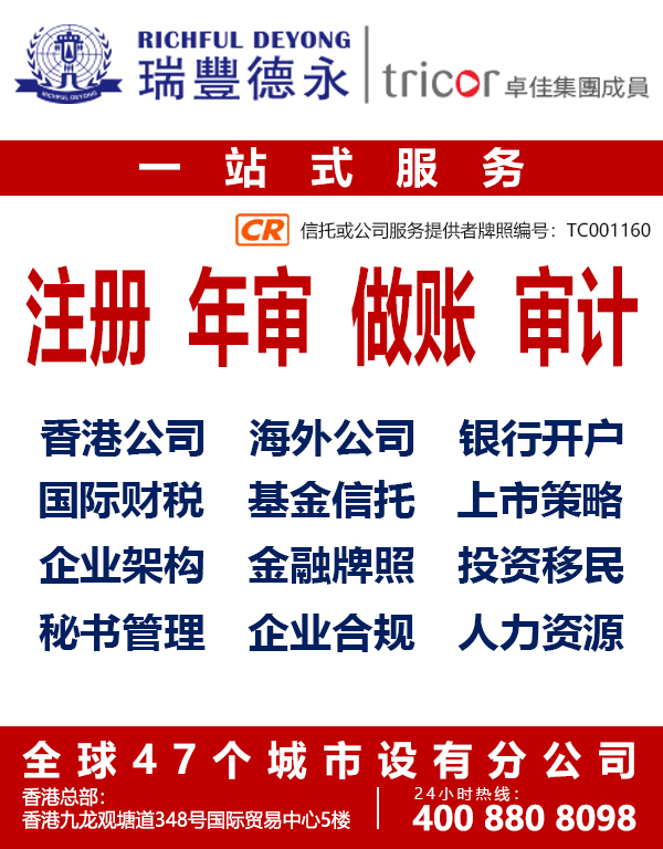 瑞豐德永(Richful Deyong)系卓佳(Tricor)集團成員,是亞洲具有領先地位的專業服務機構,在全球21個國家/50多個地區(包括中國1:香港、北京、上海、深圳、廣州、福州、廈門、寧波、南京、青島、天津、大連)設有辦事處,擁有2500多名員工,服務超過50000間公司,1300間香港聯交所上市公司,500間新加坡和馬來西亞上市公司,名列財富雜志500強企業超40%及眾多跨國知名公司。