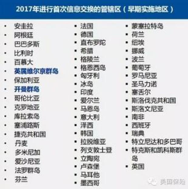 注:美國(guó)沒有簽署《通用報(bào)告準(zhǔn)則》進(jìn)行信息交換,因?yàn)槊绹?guó)已經(jīng)根據(jù)《海外賬戶納稅法案》(FATCA) 實(shí)施了自己的政府間財(cái)務(wù)信息收集體制(而且,原則上是回收的)。根據(jù)《海外賬戶納稅法案》(FATCA),從2014年開始財(cái)務(wù)信息就已經(jīng)收回美國(guó)了,因此美國(guó)目前沒打算,或者說也沒必要采納《通用報(bào)告準(zhǔn)則》(CRS)。